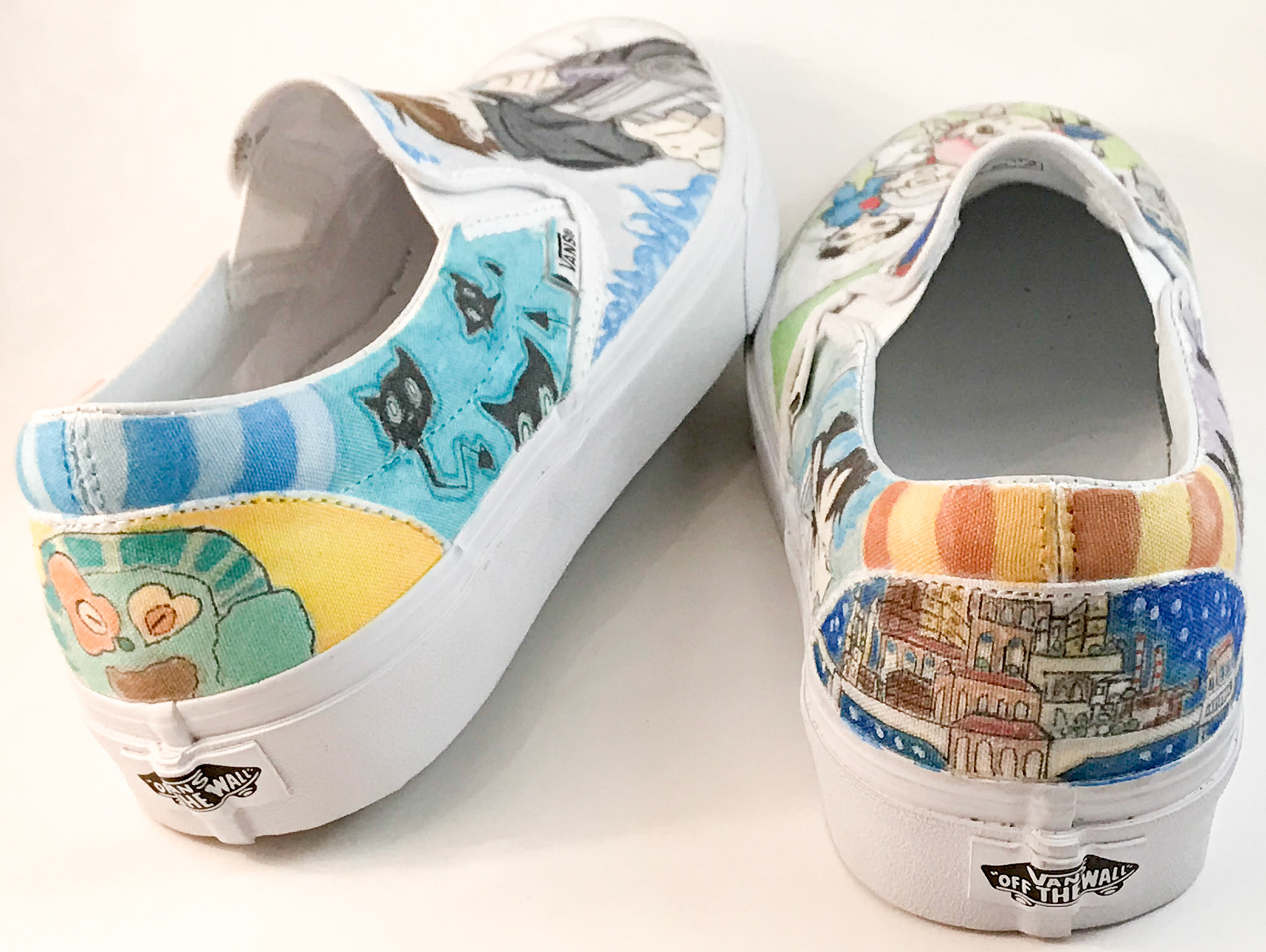 Black Ink Unicorn & Yink Yang on peach Old Skool Vans
