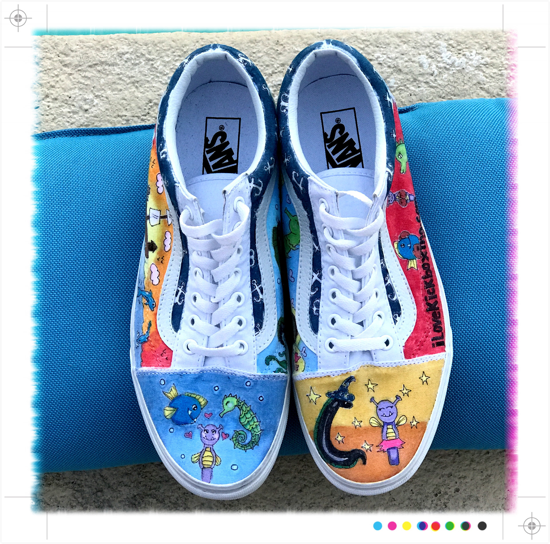 Black Ink Unicorn & Yink Yang on peach Old Skool Vans