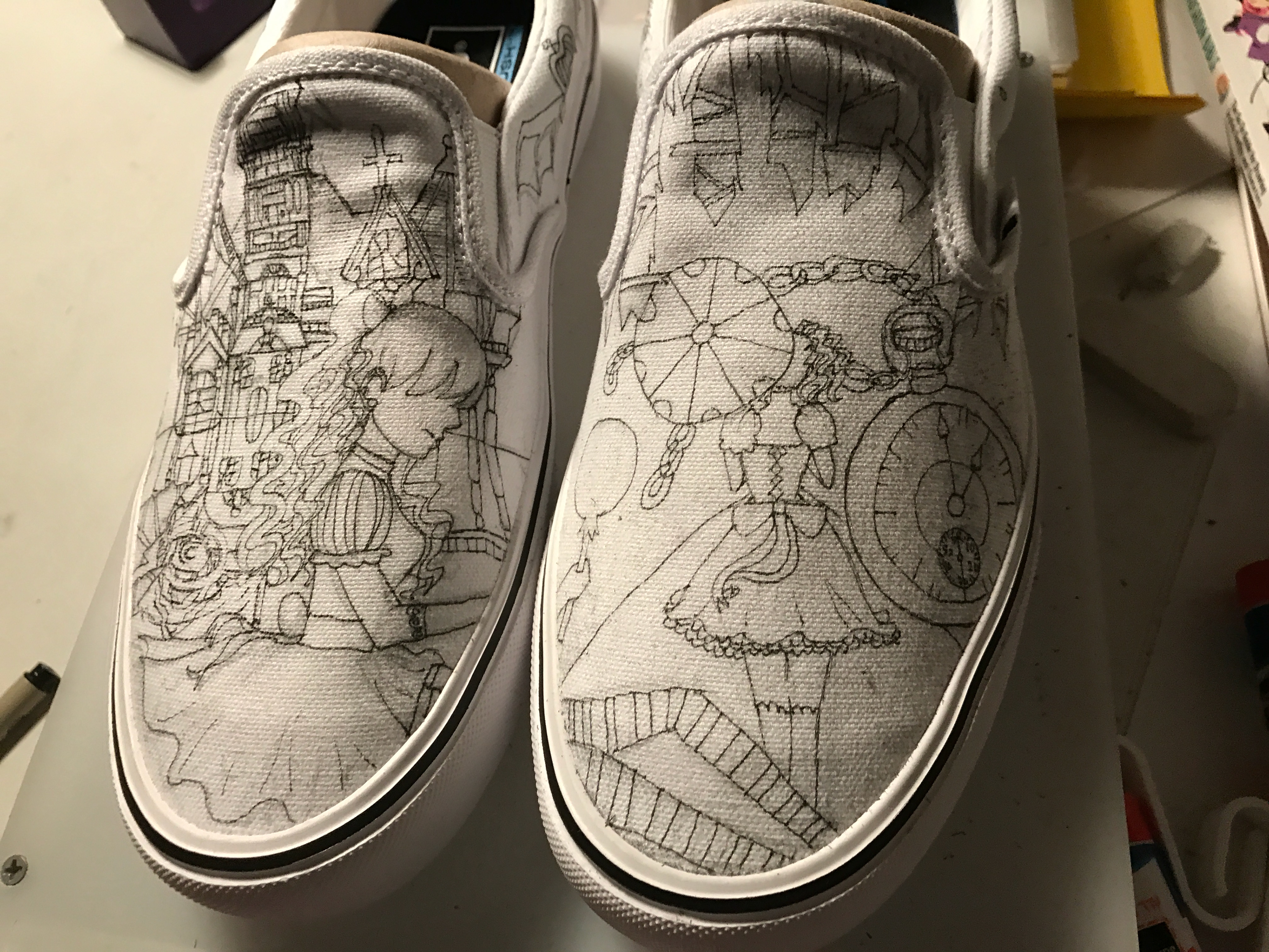 Black Ink Unicorn & Yink Yang on peach Old Skool Vans